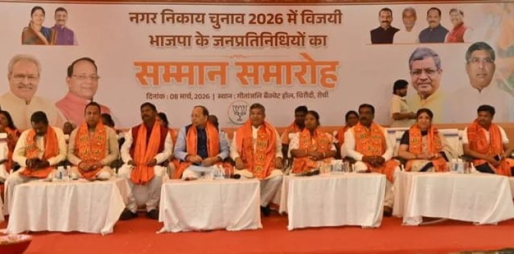 भाजपा ने रांची में विजयी निकाय प्रतिनिधियों को सम्मानित किया।