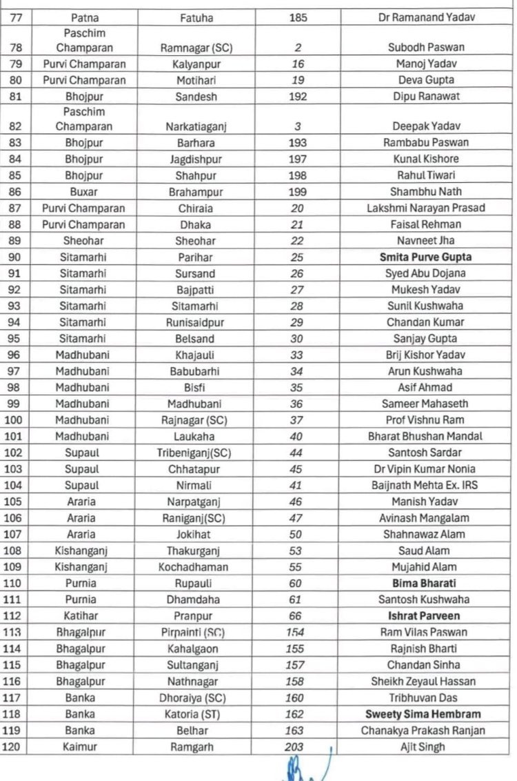 कांग्रेस ने अब तक 60 उम्मीदवारों की घोषणा की है, जबकि रविवार देर रात उसकी चौथी सूची जारी की गयी थी। वीआईपी ने भी 15 सीटों पर कैंडिडेट की लिस्ट जारी कर दिया है।