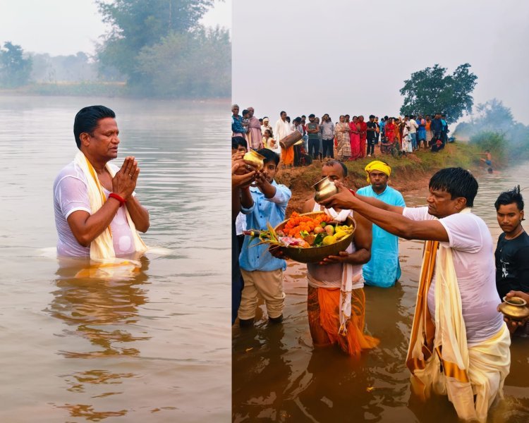 धनबाद सांसद ढूलू महतो ने पीरटांड में उदीयमान सूर्य को अर्घ्य अर्पित किया, परिवार संग की कोयलांचल की खुशहाली की प्रार्थना