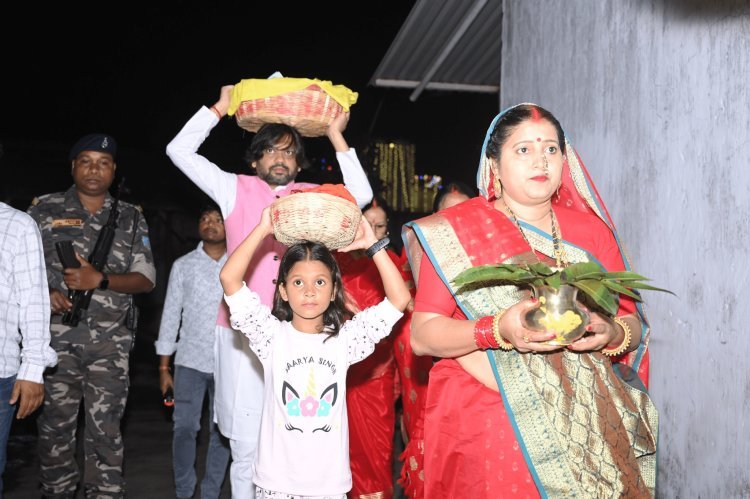 Chhath Puja 2025, छठ पूजा बिहार, छठ पूजा झारखंड, धनबाद छठ घाट, रागिनी सिंह छठ, पटना दीघा घाट, सूर्य अर्घ्य, लोक आस्था पर्व, छठ महापर्व समापन। धनबाद सांसद ढूलू महतो ने पीरटांड के खम्हारबाद घाट पर उदीयमान सूर्य को अर्घ्य अर्पित किया। पत्नी सावित्री देवी के साथ कोयलांचल की खुशहाली की कामना की।