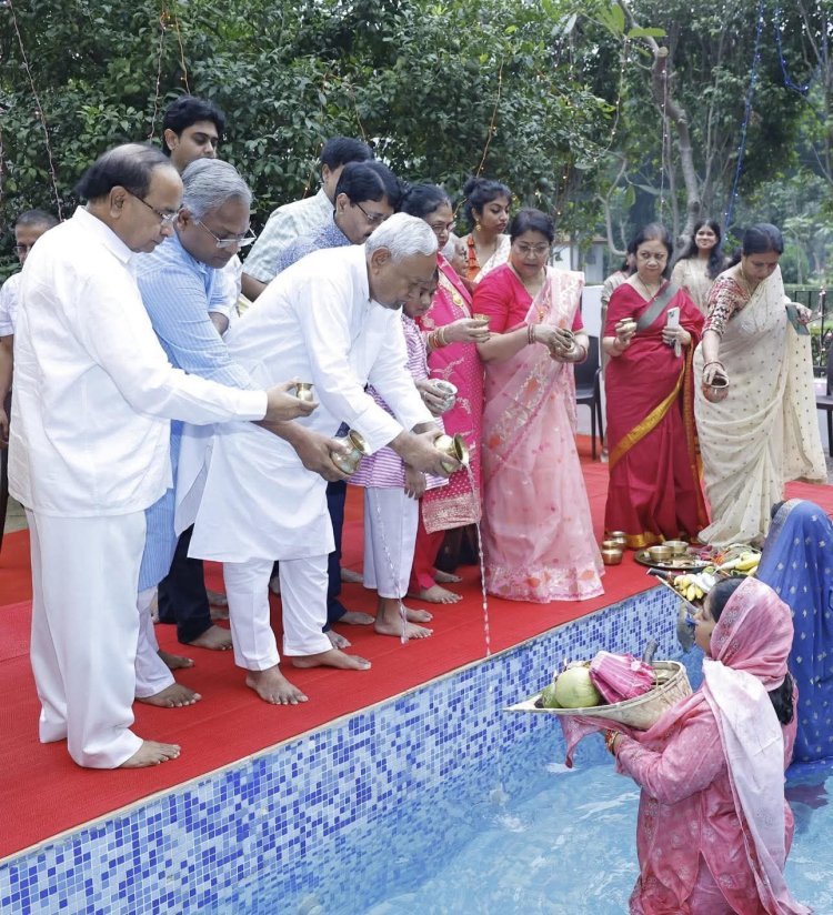 बिहार की राजधानी पटना, लखीसराय, औरंगाबाद, बड़हिया, खुटहा, मालपुर, पिपरिया, पथुआ और कन्हरपुर सहित तमाम गंगा घाटों पर श्रद्धालु अस्ताचलगामी सूर्य को अर्घ्य देने पहुंचे।सीएम नीतीश कुमार, डिप्टी सम्राट चौधरी, केंद्रीय मंत्री चिराग पासवान ने अपने परिवार के साथ छठ पर्व मनाया। और डूबते सूर्य को अर्घ्य दिया। केंद्रीय मंत्री गिरिराज सिंह ने बड़हिया स्थित अपने पैतृक आवास पर अर्घ्य दिया, जबकि उपमुख्यमंत्री विजय कुमार सिन्हा ने बड़हिया कॉलेज घाट पर भगवान भास्कर को जल अर्पित कर राज्य में खुशहाली की कामना की।मुख्यमंत्री नीतीश कुमार इस बार आचार संहिता लागू होने के कारण गंगा घाटों के दौरे पर नहीं गए, लेकिन उन्होंने पहले ही घाटों की तैयारियों की समीक्षा की थी।