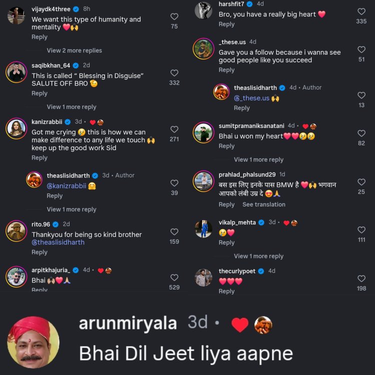 इस घटना के बाद सोशल मीडिया पर सिद्धार्थ की जमकर तारीफ हो रही है। एक यूजर ने लिखा—“इस वीडियो ने मुझे रुला दिया, करुणा का एक छोटा सा कदम किसी की जिंदगी बदल सकता है।” वहीं दूसरे ने कहा— “महंगी BMW के नुकसान के बावजूद इतना बड़ा दिल, आज के दौर में दुर्लभ है।”
