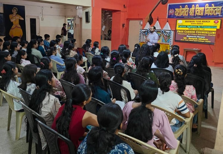 धनबाद के झरिया में मारवाड़ी युवा मंच शाखा ने कॉमर्स विद्यार्थियों के लिए करियर काउंसलिंग सेशन आयोजित किया। विशेषज्ञों ने छात्रों को भविष्य की दिशा और अवसरों के बारे में जानकारी दी।