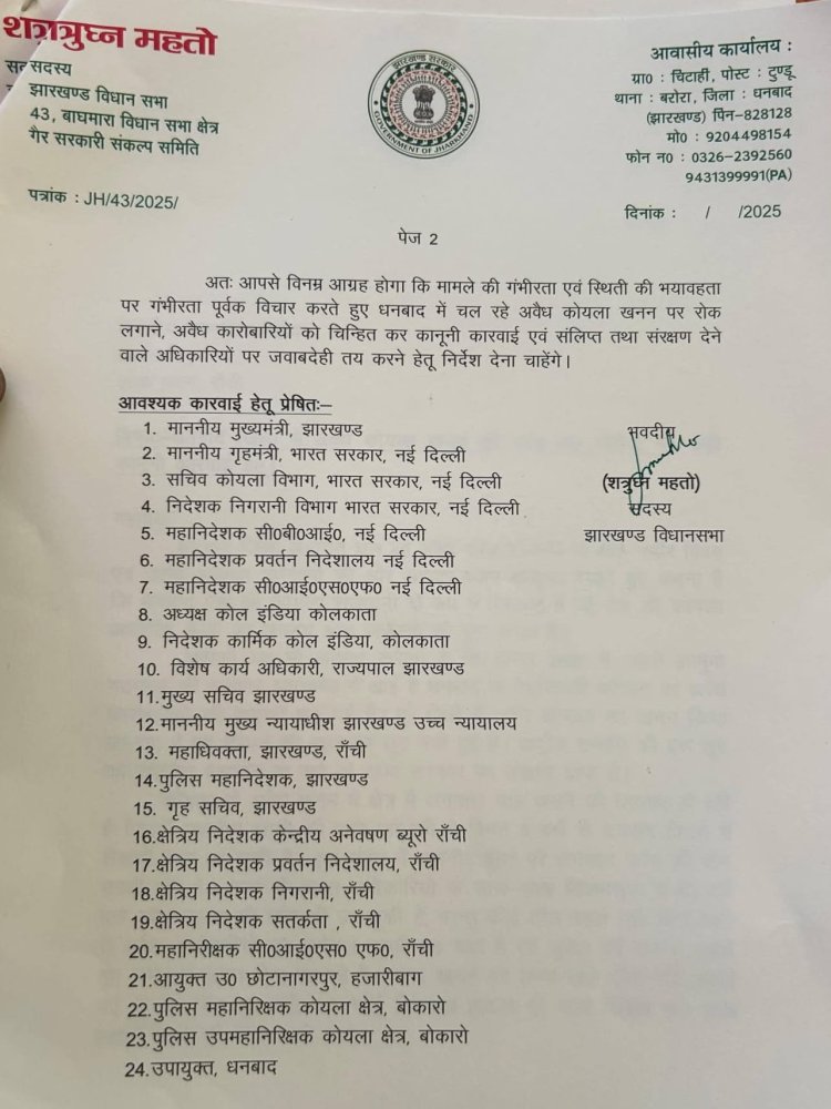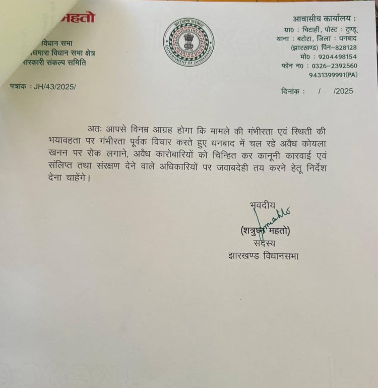 बाघमारा विधायक ने की उच्चस्तरीय जांच की मांग