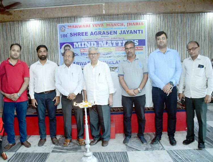 धनबाद। श्री अग्रसेन जयंती पखवारा के अवसर पर मारवाड़ी युवा मंच, झरिया शाखा ने शनिवार (4 अक्टूबर 2025) को “माइंड मैटर्स” नामक सेमिनार का सफल आयोजन किया। यह कार्यक्रम मारवाड़ी सम्मेलन, झरिया के सानिध्य में श्री अग्रवाल धर्मशाला (पुराना भवन) में हुआ, जिसका उद्देश्य था—मानसिक स्वास्थ्य के महत्व को समझना और जागरूकता फैलाना।
