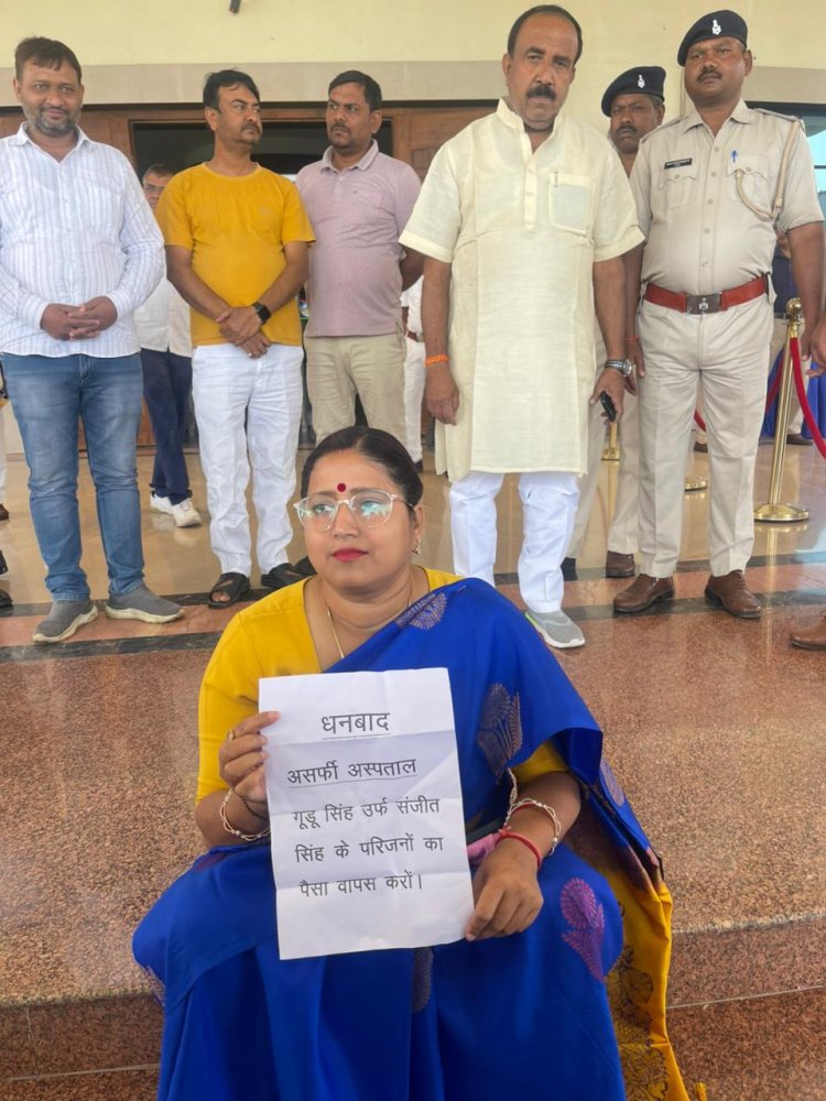 धनबाद के असर्फी हॉस्पिटल में 20 हजार के बकाया पर शव रोका, विधानसभा में धरने पर बैठीं झरिया MLA रागिनी सिंह