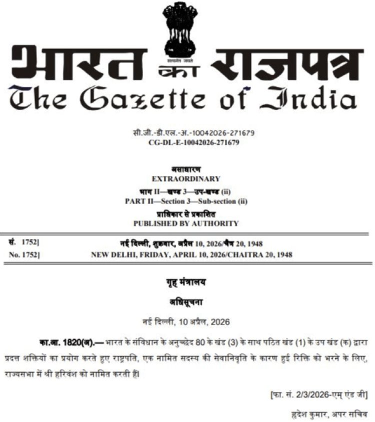 हरिवंश की राज्यसभा में वापसी: राष्ट्रपति ने किया नामित, 2032 तक रहेंगे सांसद