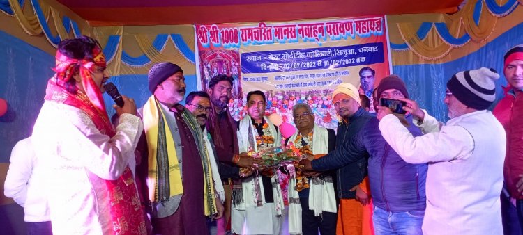 धनबाद। बिहार जनता खान मजदूर संघ के महामंत्री रणविजय सिंह वेस्ट मोदीडीह कोलियरी में आयोजित श्री श्री 1008 रामचरित मानस नवाह्न परायण महायज्ञ में सम्मिलित हुए। कमेटी की ओर से श्री सिंह का जोरदार स्वागत किया गया। श्री सिंह ने पूजा अर्चना कर सभी भक्तों को संबोधित भी किया। मौके पर बीसीसीएल के जीएम एके सिंह भी उपस्थित थे।