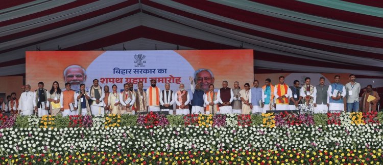 नीतीश कुमार ने 10वीं बार बिहार के मुख्यमंत्री पद की शपथ ली। NDA के 26 मंत्रियों ने शपथ ली, 10 नए चेहरे शामिल। जातीय-संतुलन और युवा नेताओं पर जोर।